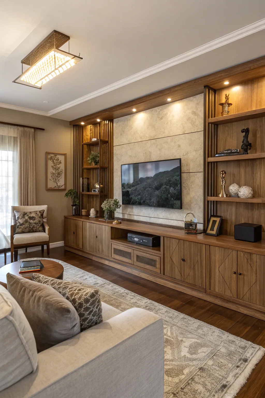 Combine various materials and textures for a varied TV wall that tells a story. This approach, a favorite of mine, brings personality and warmth to your space.