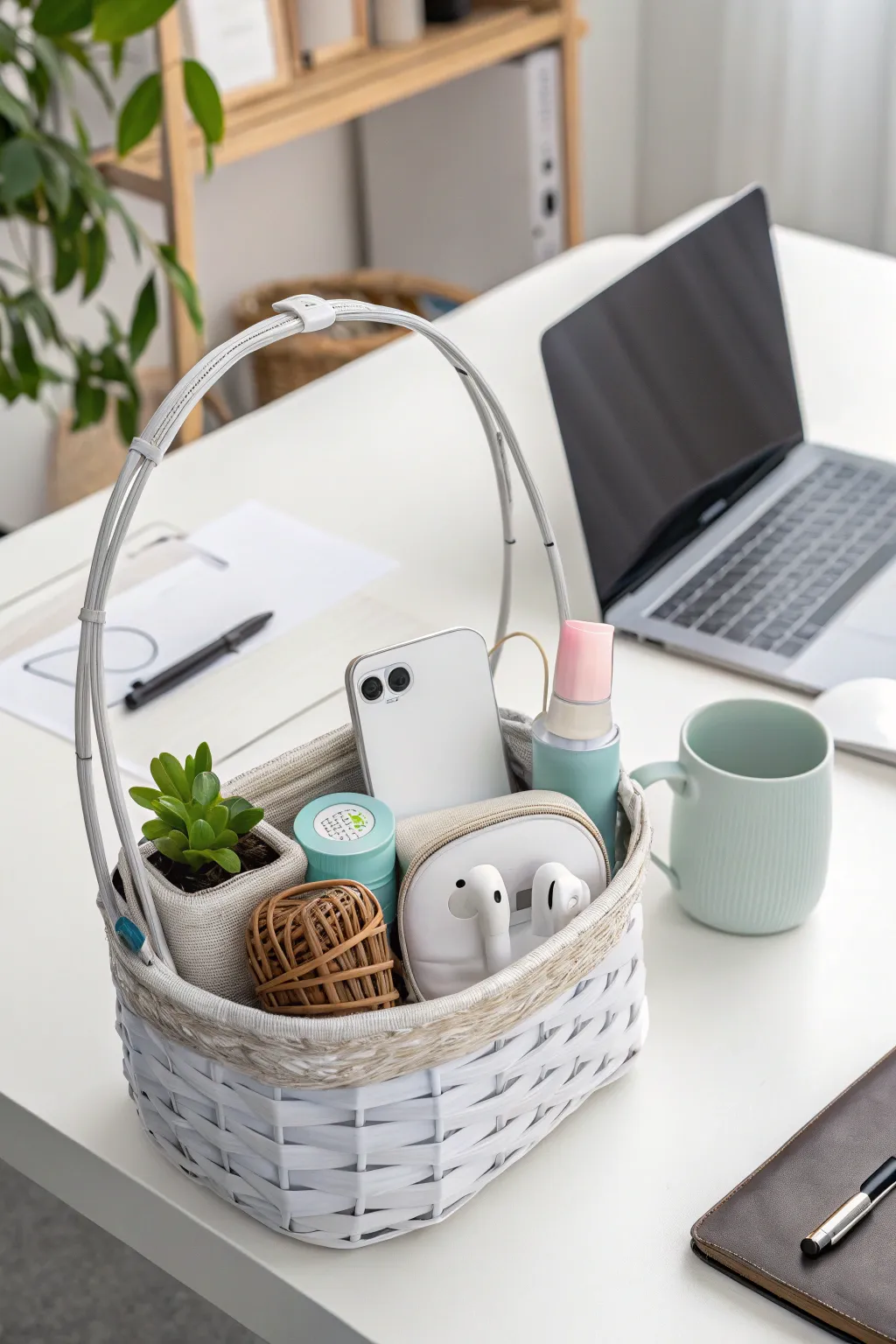 Delight the tech enthusiast with a basket showcasing cordless headphones and a handy device organizer. Since I appreciate practical gifts, I know that these essential items are always well-received.