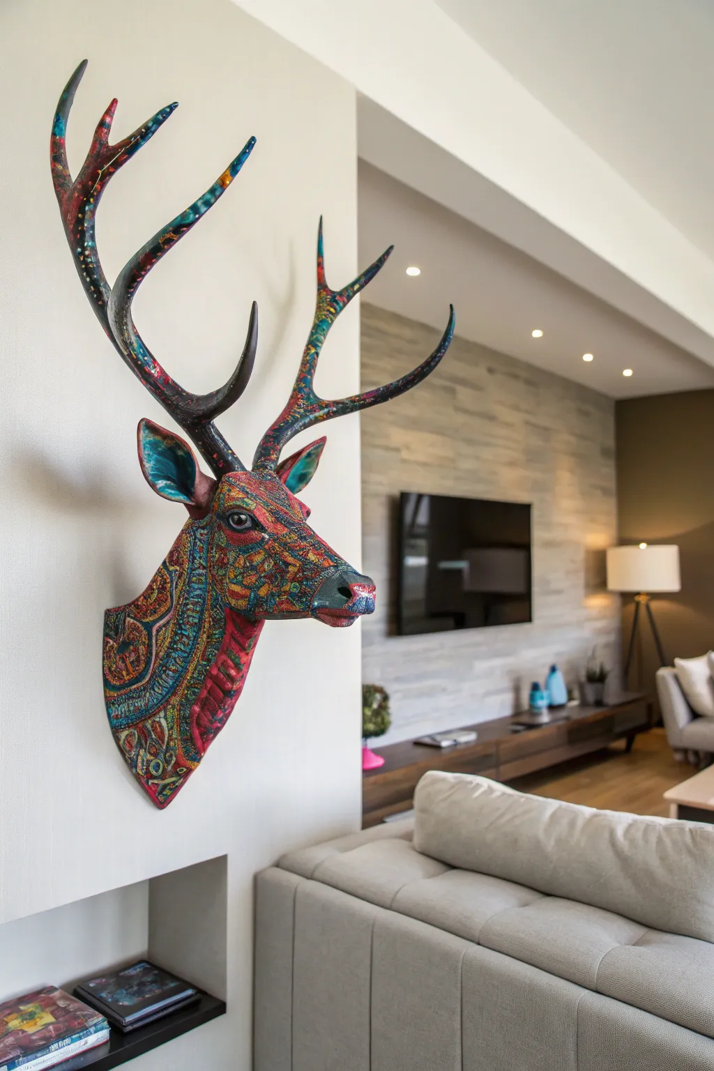 Add antlers to a bohemian panorama to create a combination of textures and styles. It’s ideal for individuals who adore a customized, layered style.