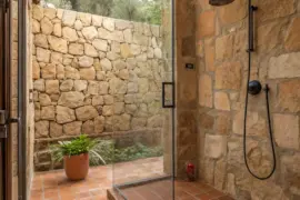 - Artistic Patchwork Floor Stones: Design an extraordinary, vibrant floor with artistic patchwork stones, invigorating any bathroom setting.