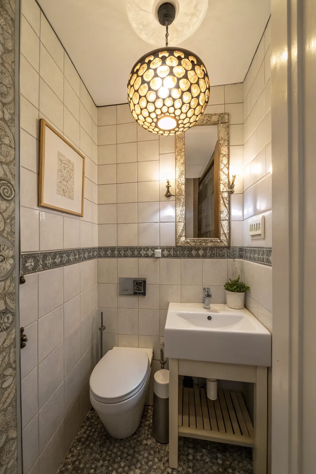- Modern Mini Chandelier: Transform your bathroom with a sleek, modern mini chandelier for a contemporary flair.