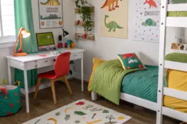 A themed rug can bring your entire room together while enhancing ease. I selected a rug that mirrors my gaming passions, rendering the room cohesive and inviting.