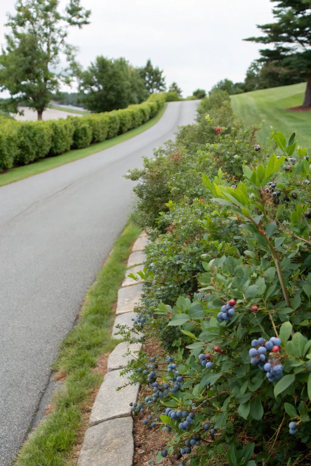 Enhance your berm with shaped flora for an elegant touch. I prefer utilizing evergreen shrubs because they preserve their form and shade throughout the year, delivering structure and sophistication.
