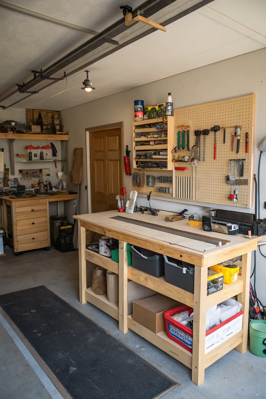 Use a pegboard wall for storage. It’s good for tools or items.