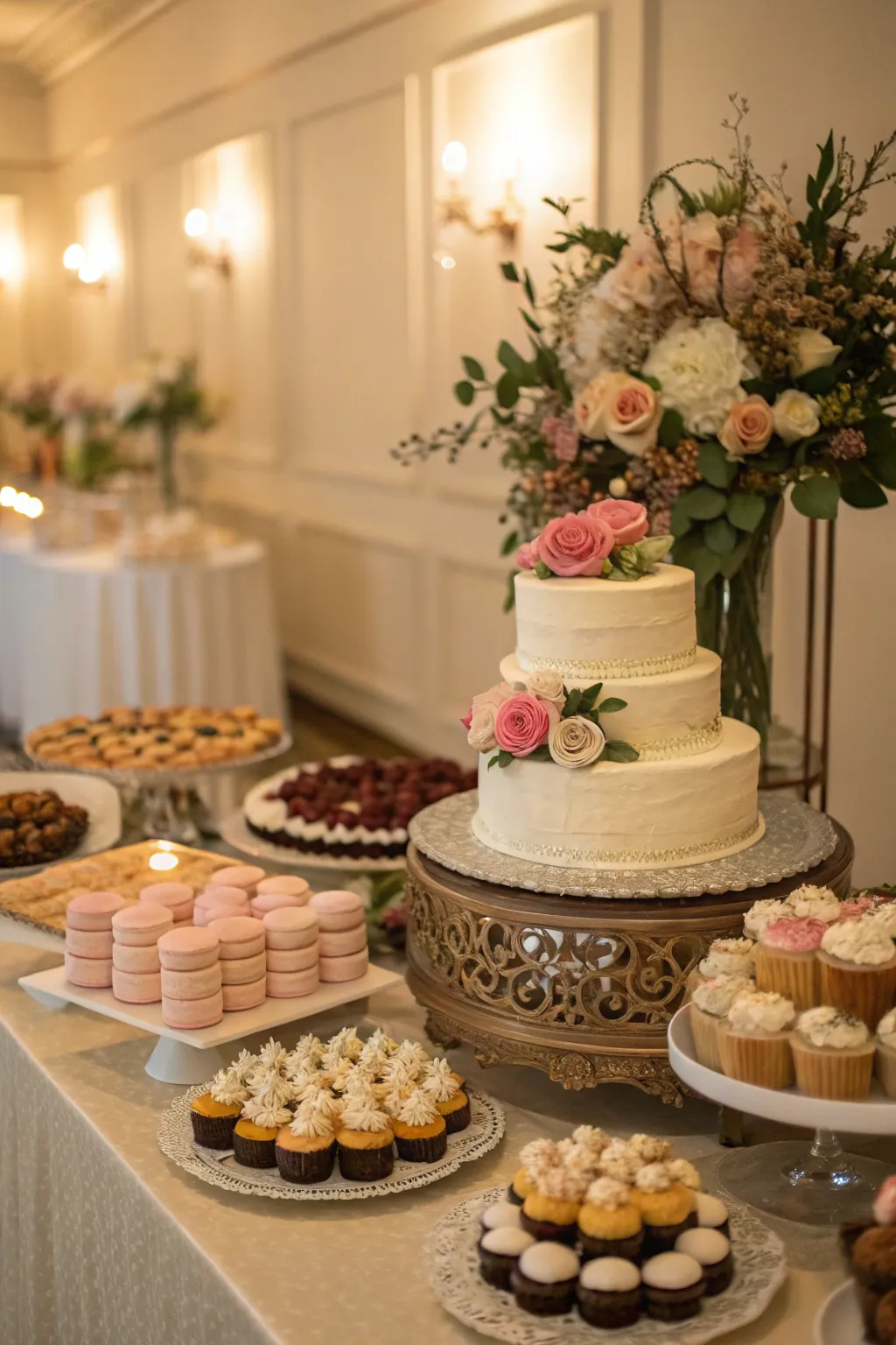 - Detailed Dessert Tower: Showcase your wedding cake using an elegant stand, creating height and beauty.