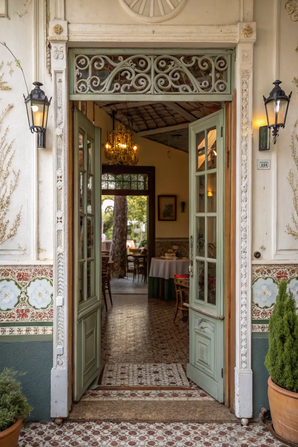 Infuse some glamour with Art Deco inspirations. I once used metallic trims and geometric shapes to create a dazzling entryway.