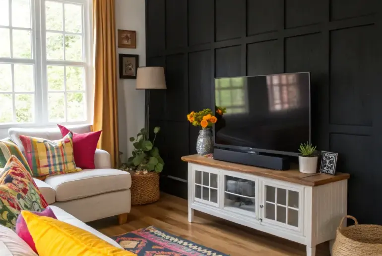 There’s an undeniable elegance to a deep-toned wall behind your TV. It has the power to transform your living room into a captivating and fashionable space, effortlessly capturing attention and defining the atmosphere. Opt for Pared-Down Monochromatic Decor Monochrome decor offers a streamlined, modern contrast on a dark accent wall. A monochromatic palette preserves a refined and current aesthetic. From my observations, black and white decor set against a dark wall suggests a pared-down yet…