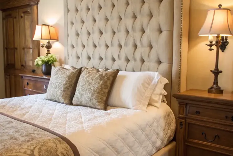 Tufted headboards stand out as bedroom focal points, infusing grace and coziness into your personal haven. With skillful styling, they have the power to turn any bedroom into a sumptuous getaway. Hollywood Radiance A glamorous bedroom featuring a luxe tufted headboard. Infuse a hint of Hollywood radiance with a tufted headboard made from luxurious fabrics like satin or silk. Metallic buttons and details can intensify the effect. I suggest matching this with crystal lighting for…