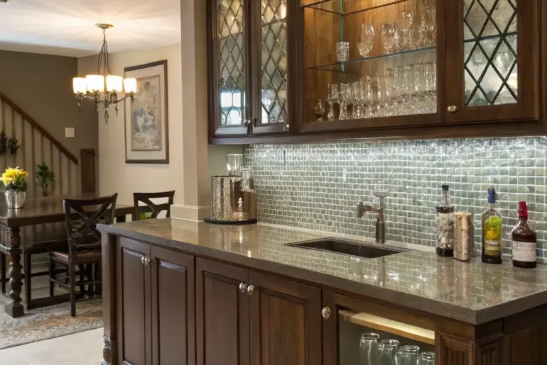 Creating a bar backsplash is like setting the scene for memorable moments in your home. Let’s uncover exciting ideas to transform your bar area into a breathtaking centerpiece. Luster Touches A lavish home bar with a luster touch backsplash and elegant finishes. Incorporate a hint of opulence with luster touches. Be it gold, silver, or bronze, these components can morph a simple bar into an enchanting centerpiece. Check if these fit your needs: Gilded Adhesive…