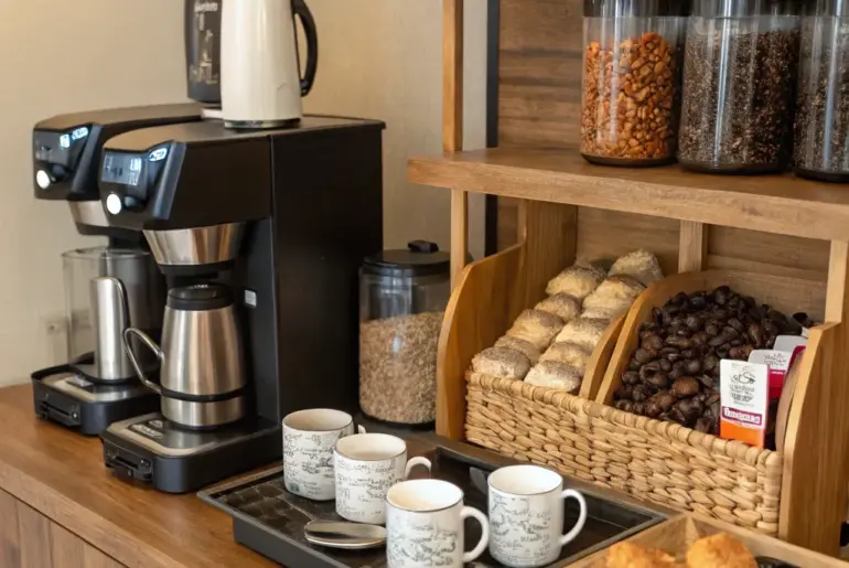 Setting up a coffee station on your counter is akin to designing your own little café right in your home. It’s a harmonious blend of beauty and practicality, turning every coffee moment into something truly special. Seasonal Shift Seasonal decor keeps your coffee area lively. Change your decor seasonally to keep things interesting. Whether it’s pumpkins for fall or flowers for spring, seasonal elements can refresh your space. Check these products out: Fake Autumnal Foliage…