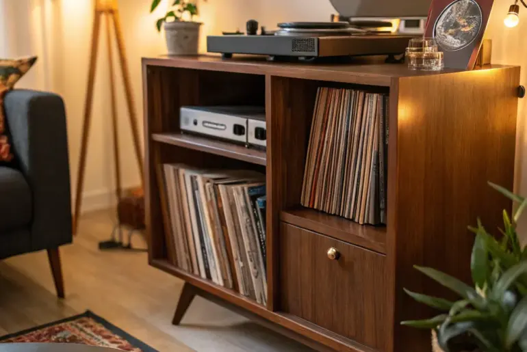 Turning a simple corner into a vibrant showcase for your beloved vinyls can be both fulfilling and fashionable. Allow me to share some fresh concepts for record player consoles that harmonize visual appeal with practical utility. Integrated Harmony Integrated storage keeps your vinyl collection orderly and within easy reach. Think about a console with integrated storage for your vinyl collection, complete with custom slots and shelving to keep everything in its place. In my own…