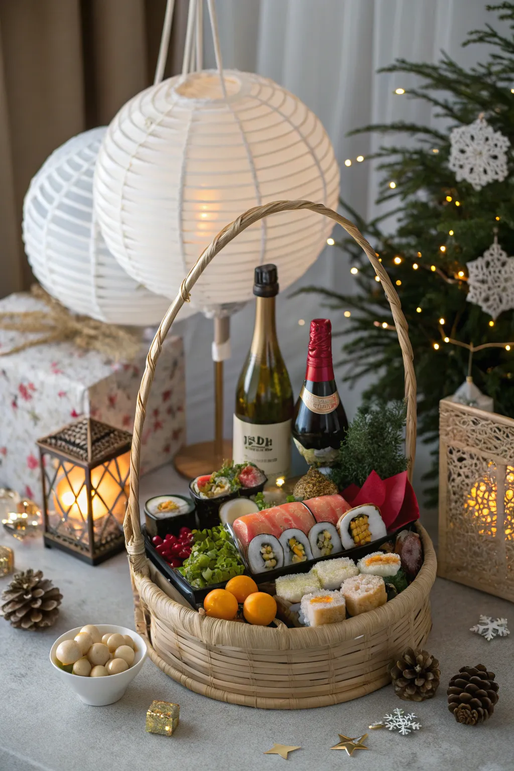 For a distinctive twist, incorporate a selection of rice brew with sushi-inspired snacks. It’s an unusual and delightful present that surprises and impresses, particularly among those open to new traditions.