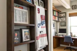 Positioning a bar cart in the corner introduces a refined and functional element for hosting gatherings. I am fond of presenting elegant glassware and thematic decorations on mine.