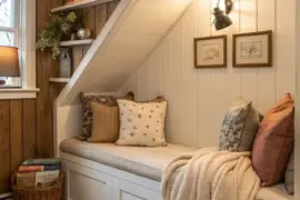A charming reading nook has the power to turn any corner into the most cherished area of your home. Incorporate a plush chair, a petite side table, and a radiant lamp to create an inviting atmosphere for hours of leisure.