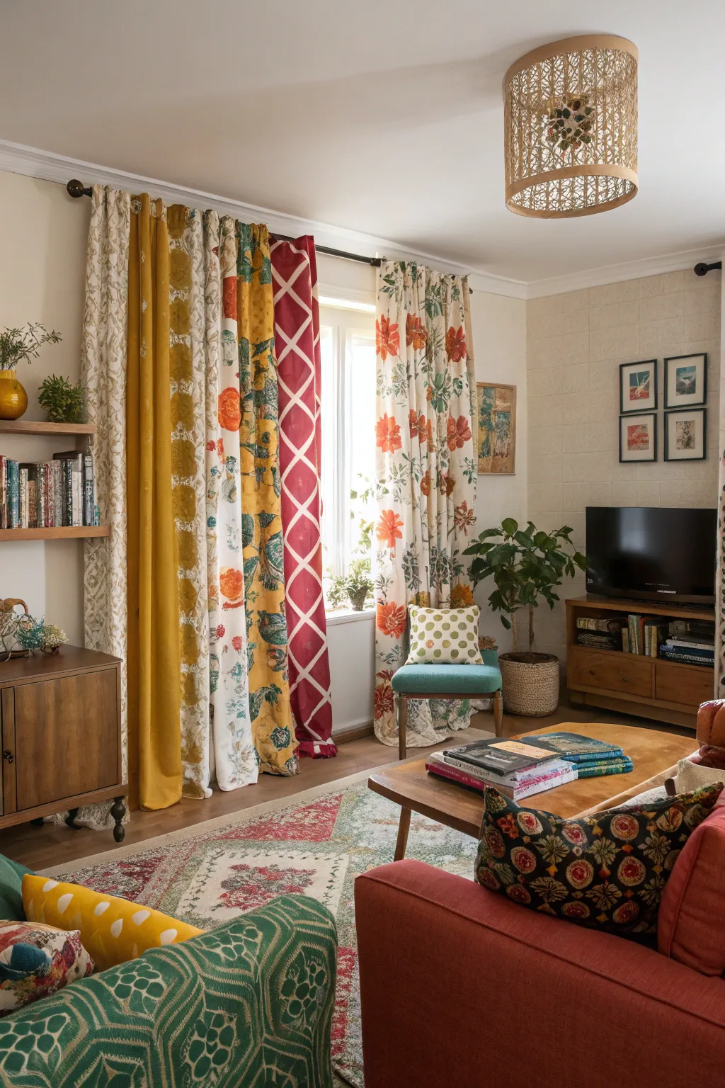 For a lively twist, use curtains to introduce a splash of color. It’s a simple way to refresh your space without a major overhaul.