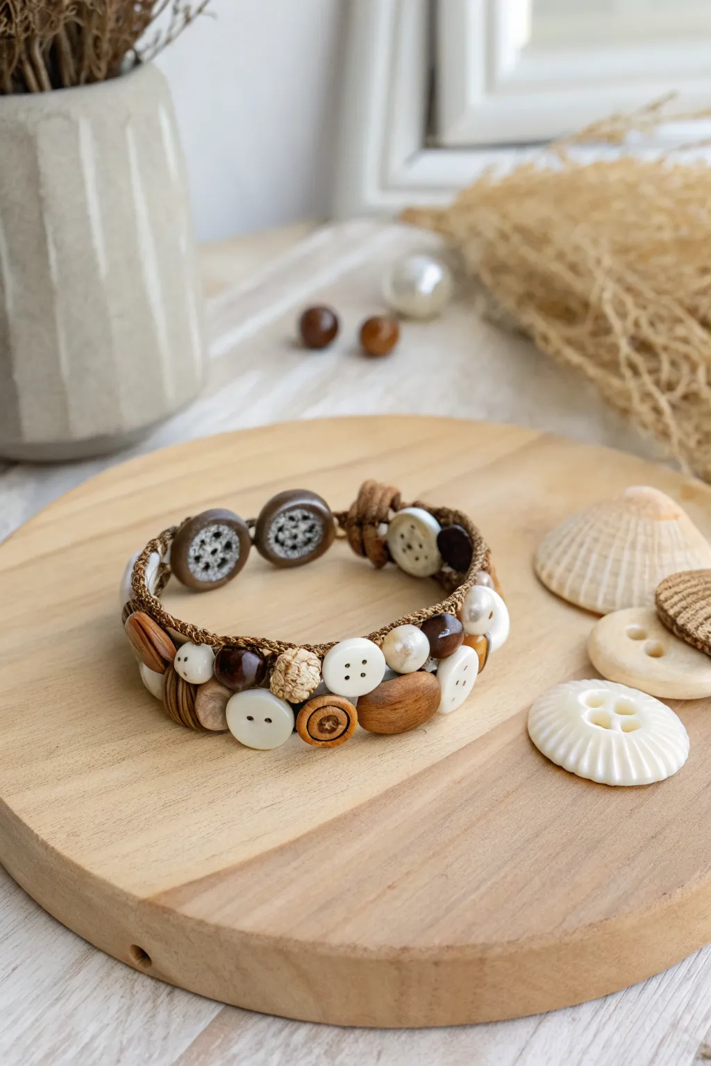 Use extra buttons to craft unique button bracelets that offer charming vintage appeal. Looking through my button collection always sparks a new idea!