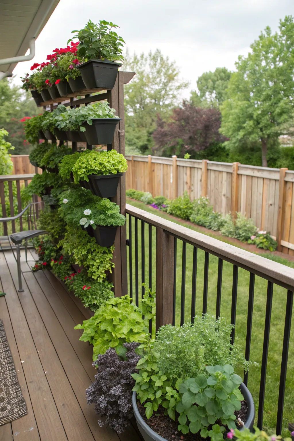 If you’re short on space, upright gardens are a smart solution. I attached some floral holders to the side of my deck, and they’re perfect for herbs and small flowers.