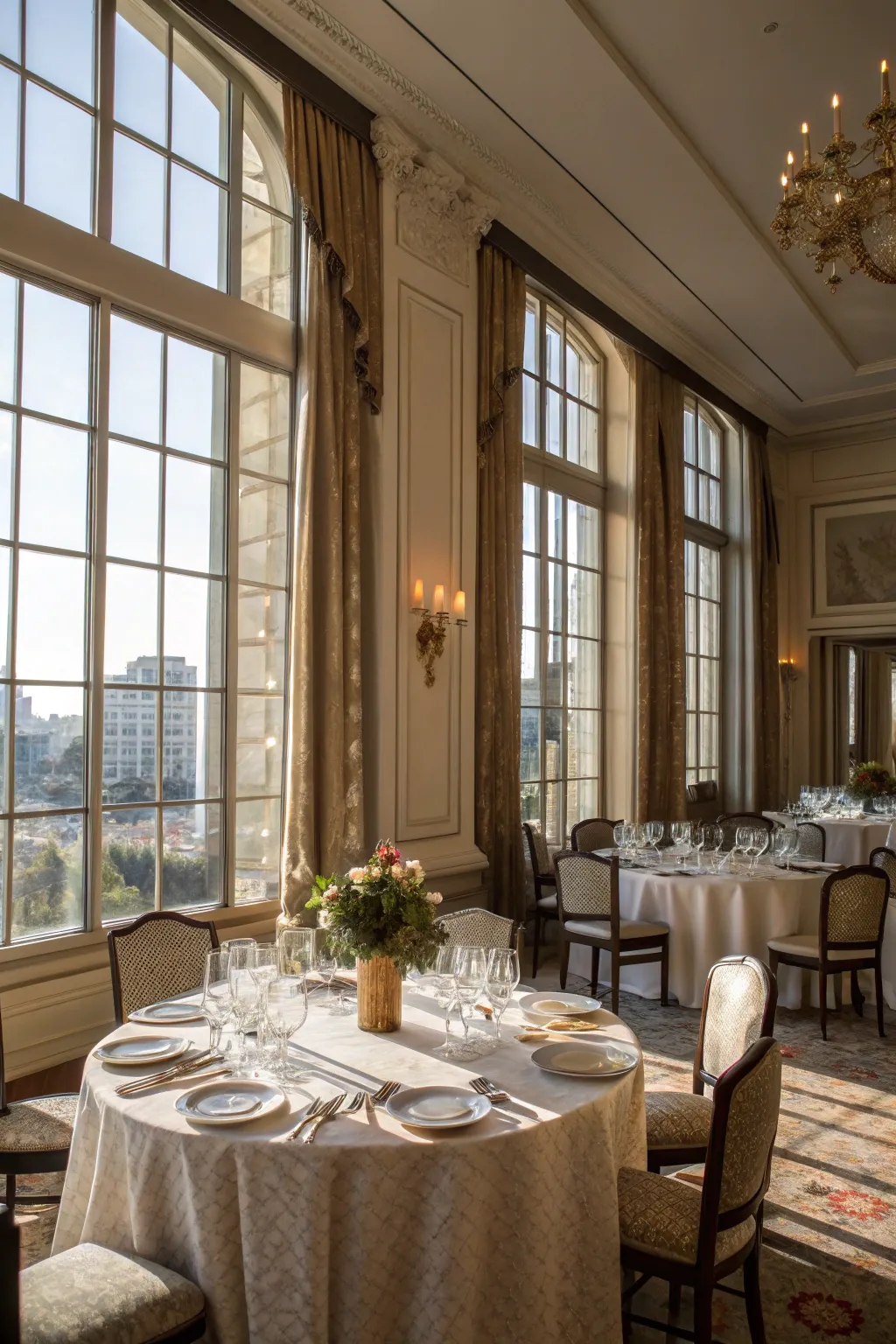 • Delicate Window Coverings: Enhance natural light with delicate window coverings, adding elegance and warmth to your dining room.