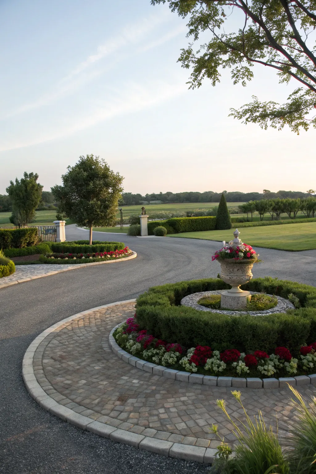 A round driveway conveys elegance and sets a grand tone. It’s a functional layout I appreciate for expansive estates.