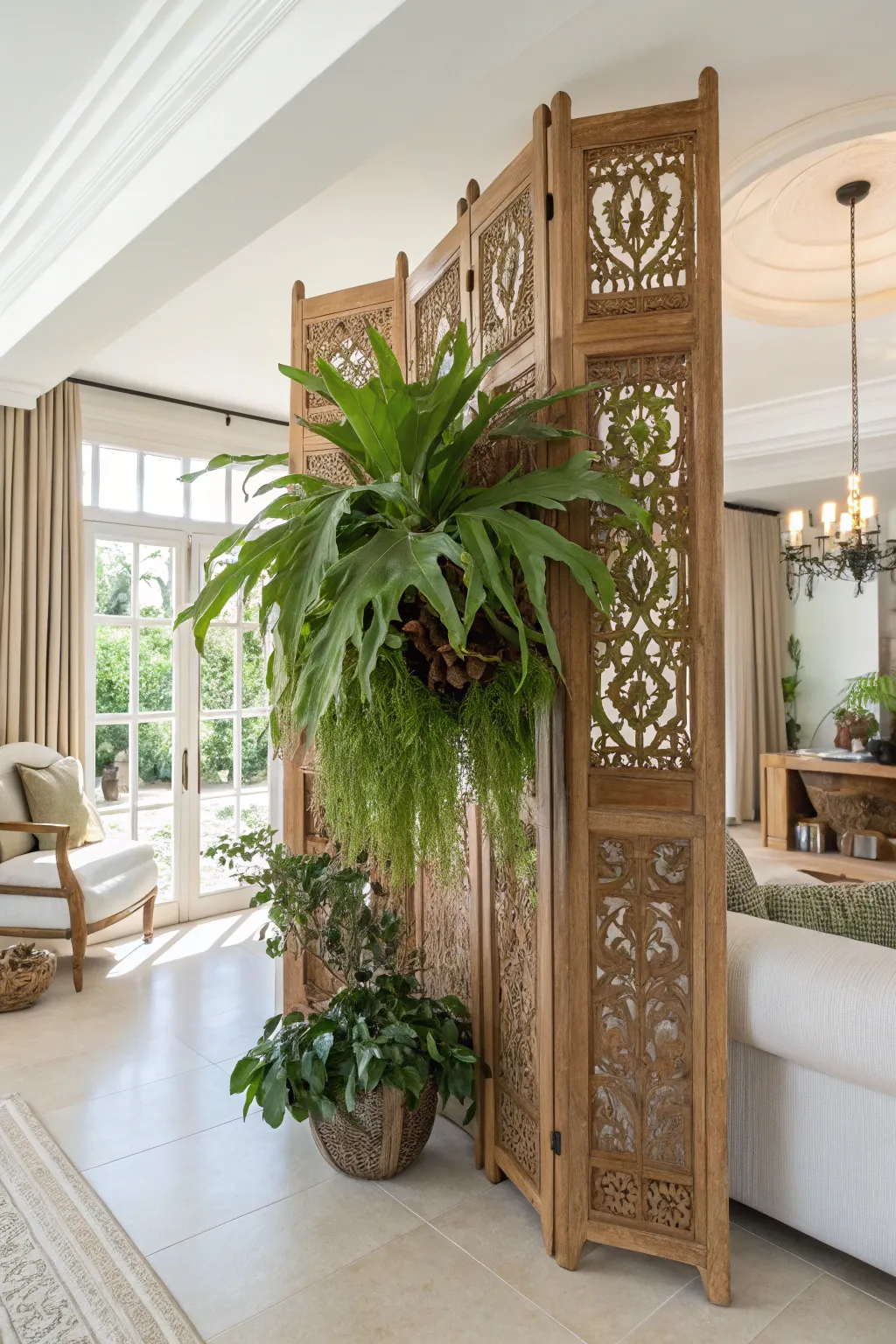 Employ a ornamental shield as a backdrop for your fern. This creates a dramatic, elegant partition in open spaces.