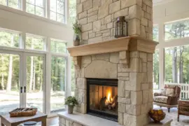 Envision a stone fireplace, extending from floor to ceiling, that infuses the untamed allure of the outdoors into your home. I’ve consistently noted that natural stone imparts an earthy vibe that feels both enduring and reassuring.
