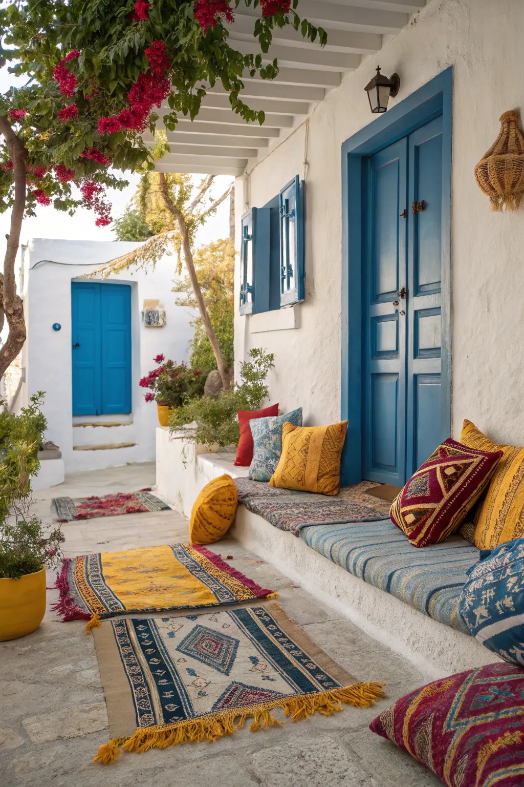 Decorate with artisanal ceramic pieces for an authentic touch. I love sourcing local ceramic artwork to give my porch a unique Mediterranean flair.