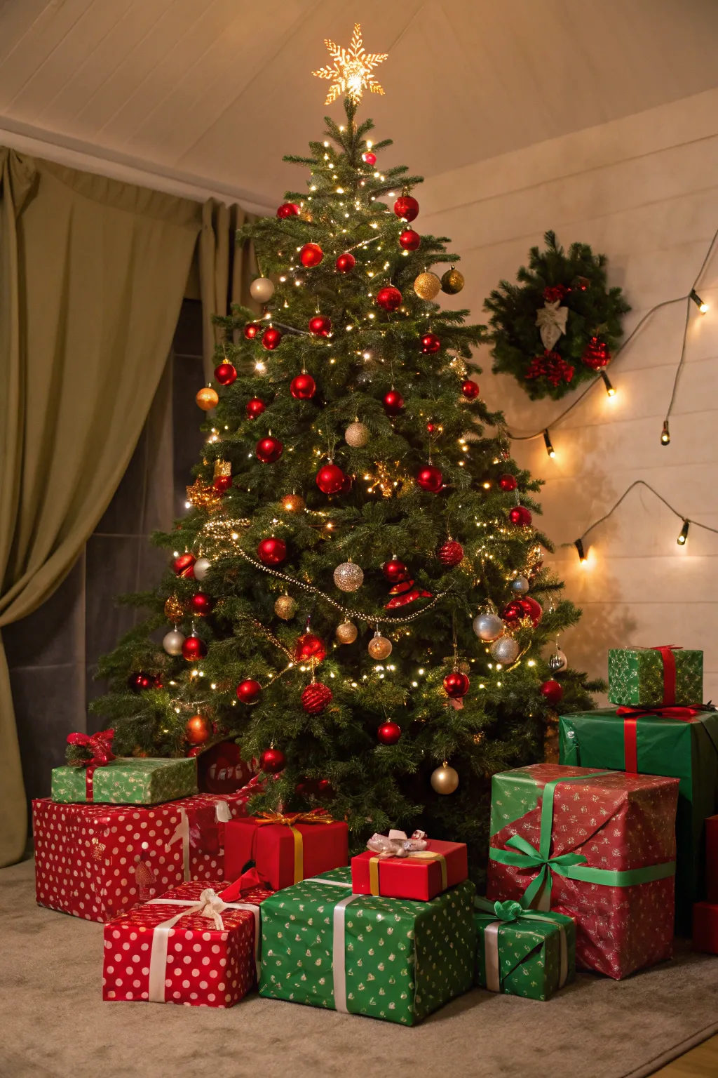 - Festive Ornament Set: Enhance your tree with classic red and green baubles for a timeless festive touch.
