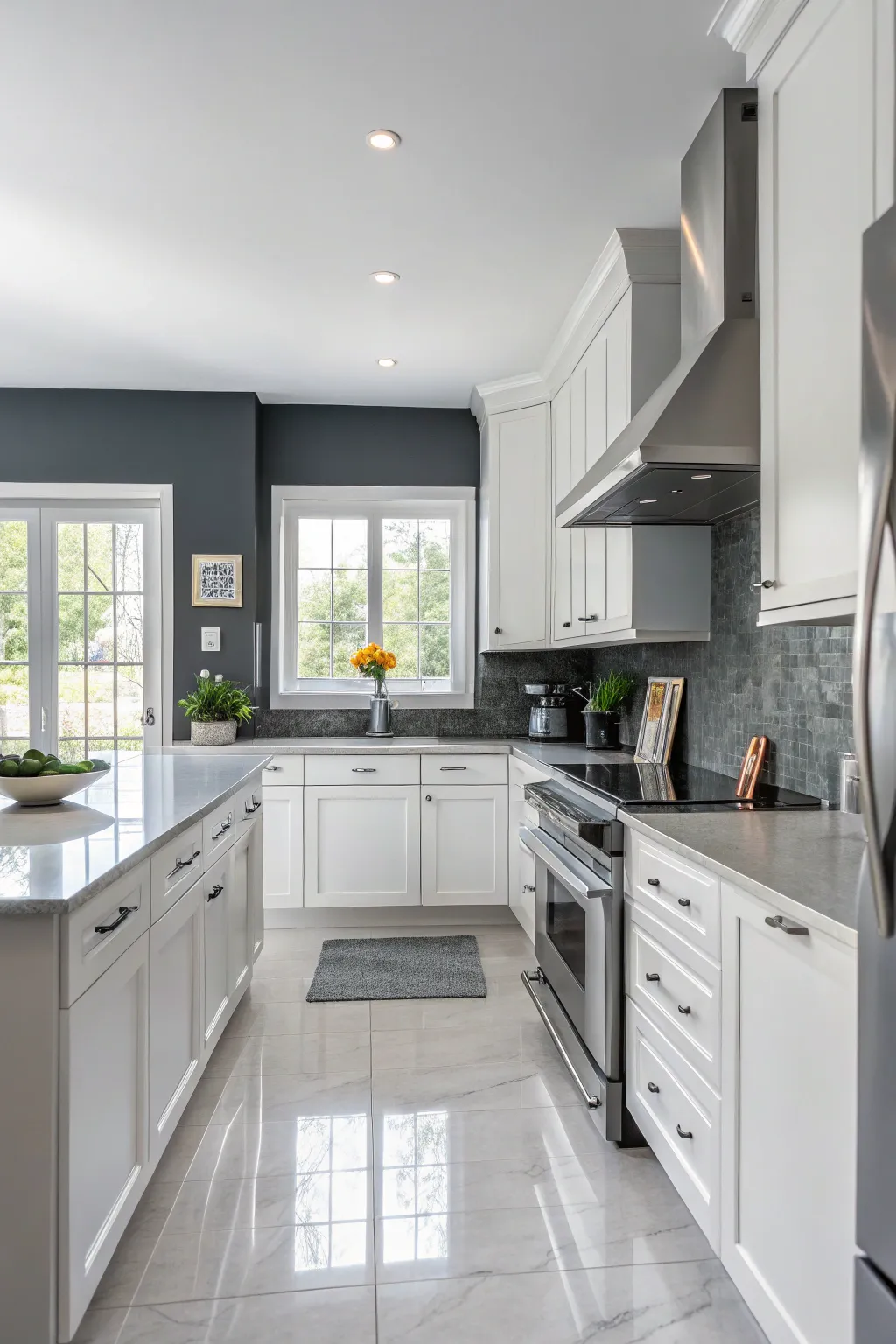 • White and Grey Kitchen Island with Storage: With a stylish kitchen island that offers plenty of storage and a modern design, you can enhance your space.