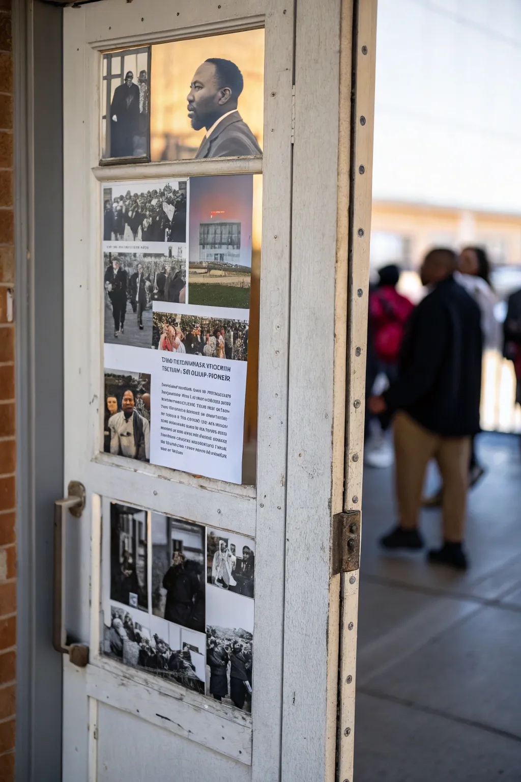 Design a door that gives tribute to famous Black trailblazers like Martin Luther King Jr. and Rosa Parks. Use strong images and famous lines to ensure their legacy stays with everyone who passes by.