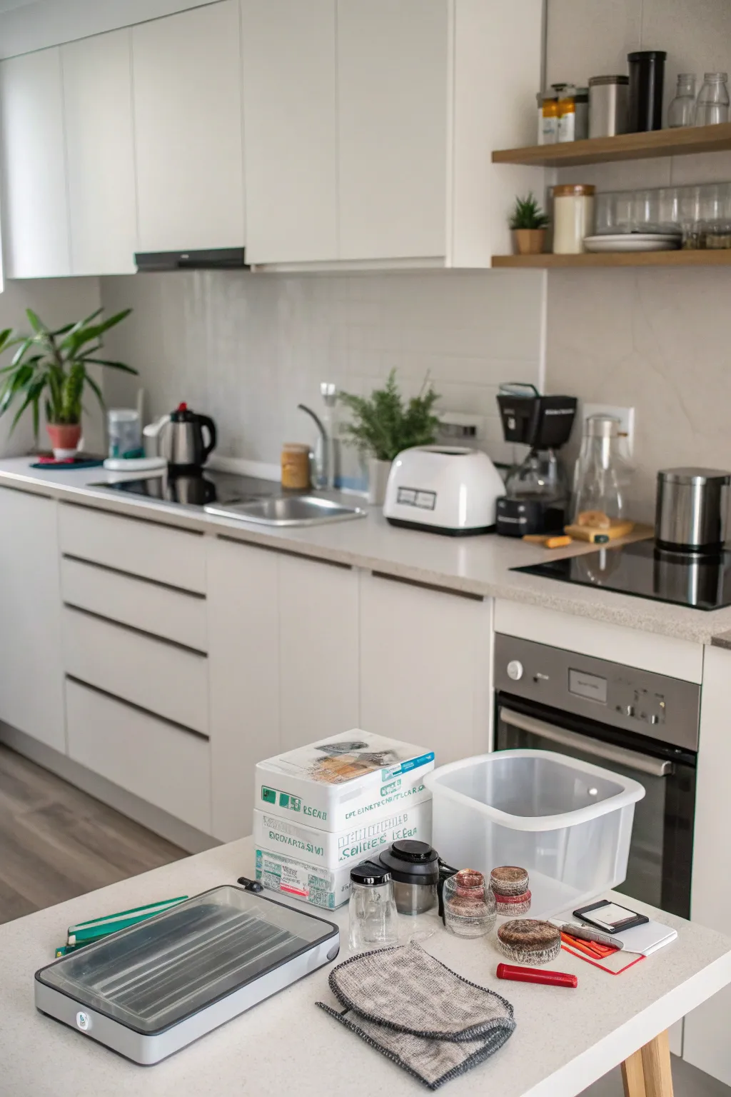 • Space-Saving Containers: Keep things neat with stackable containers, great for reducing what you have and clearing out your kitchen.
