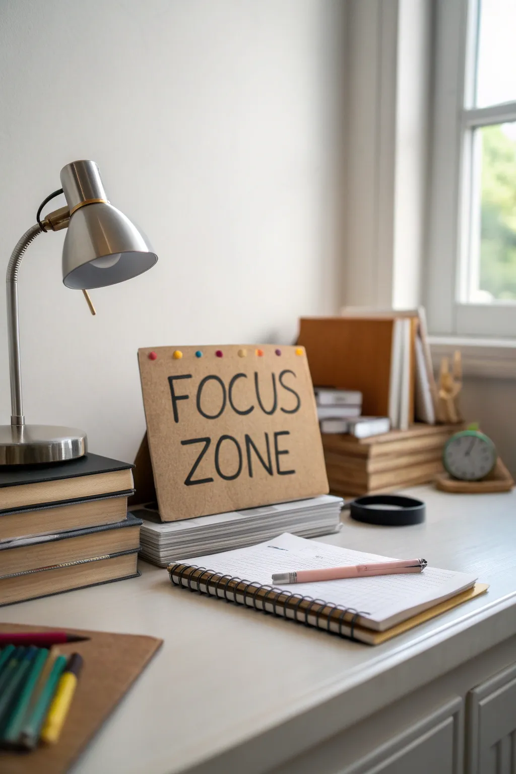 Position a ‘Do Not Disturb’ reminder on the desk during study periods. This signals to family members that it’s time for concentrated, uninterrupted work.