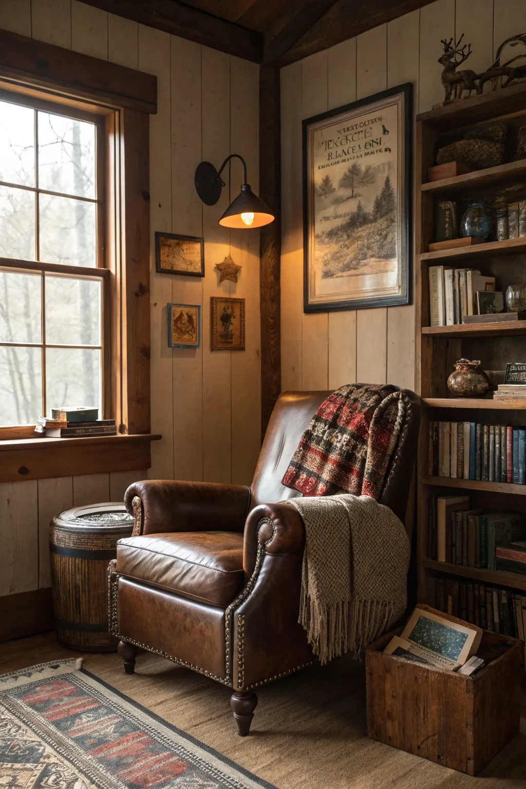 Incorporate tartan and plaid fabrics to channel a classic hunting lodge visual. A plaid throw draped over the easy chair easily evokes a sense of warmth and heritage.