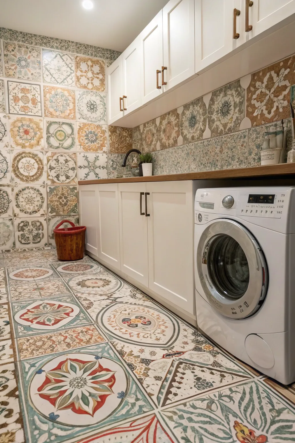Decorative tiles on the floor or as a backsplash can add character and texture. I once used some tiles with a Moroccan design, turning an ordinary room into something visually exciting.