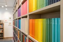 A vibrant background enhances the library’s ambiance.