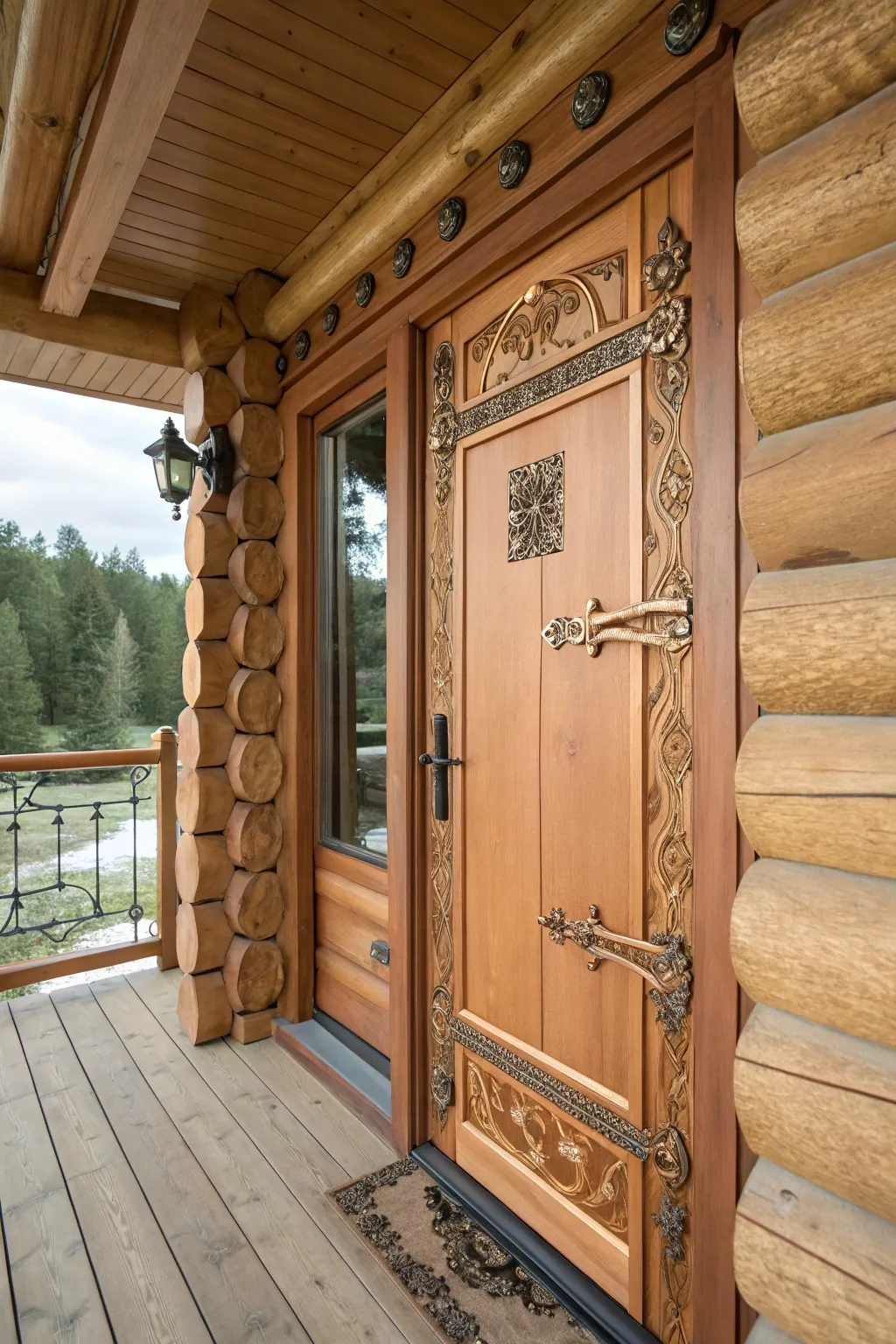 Envision a door that communicates a narrative through detailed sculptures of forest animals. I’ve come across doors like these in cabins that immediately create a bond with the unspoiled nature outside.