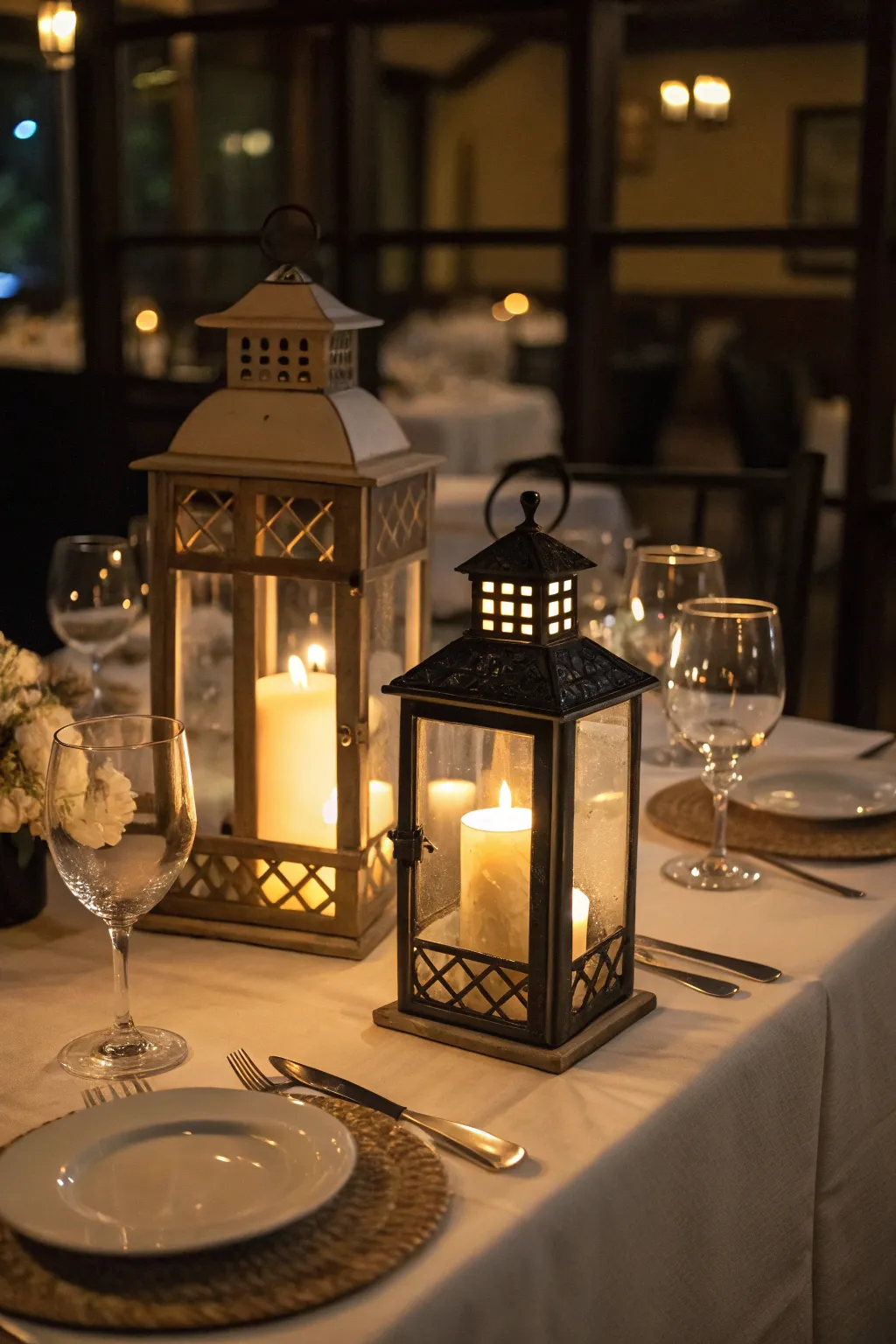 For added mood, use light fixture-style candle holders. The enclosed glow offers a cozy radiance, suitable for evening gatherings.