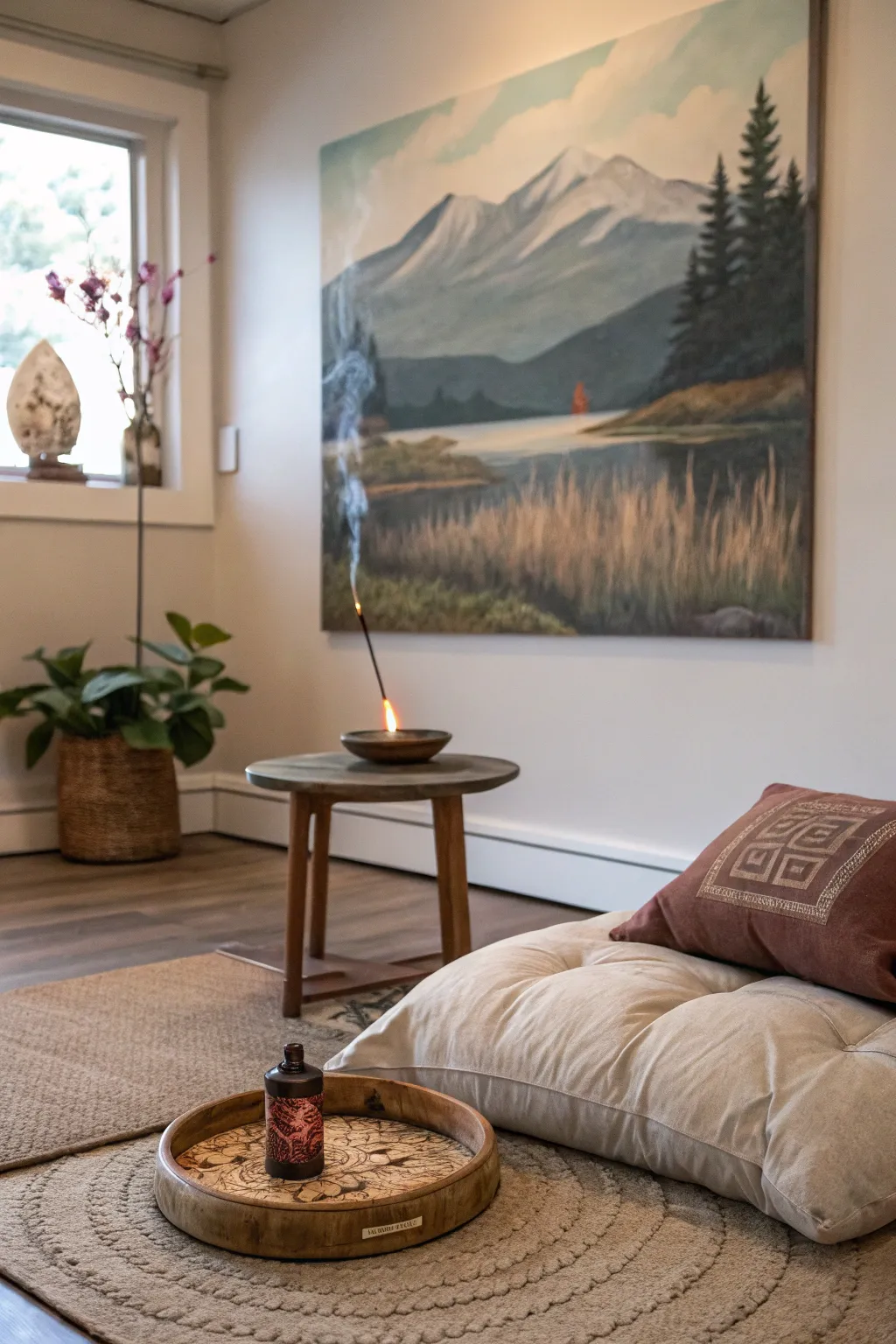 Bring in natural elements like a small indoor fountain. The gentle sound of water adds a soothing layer to my meditation practice.