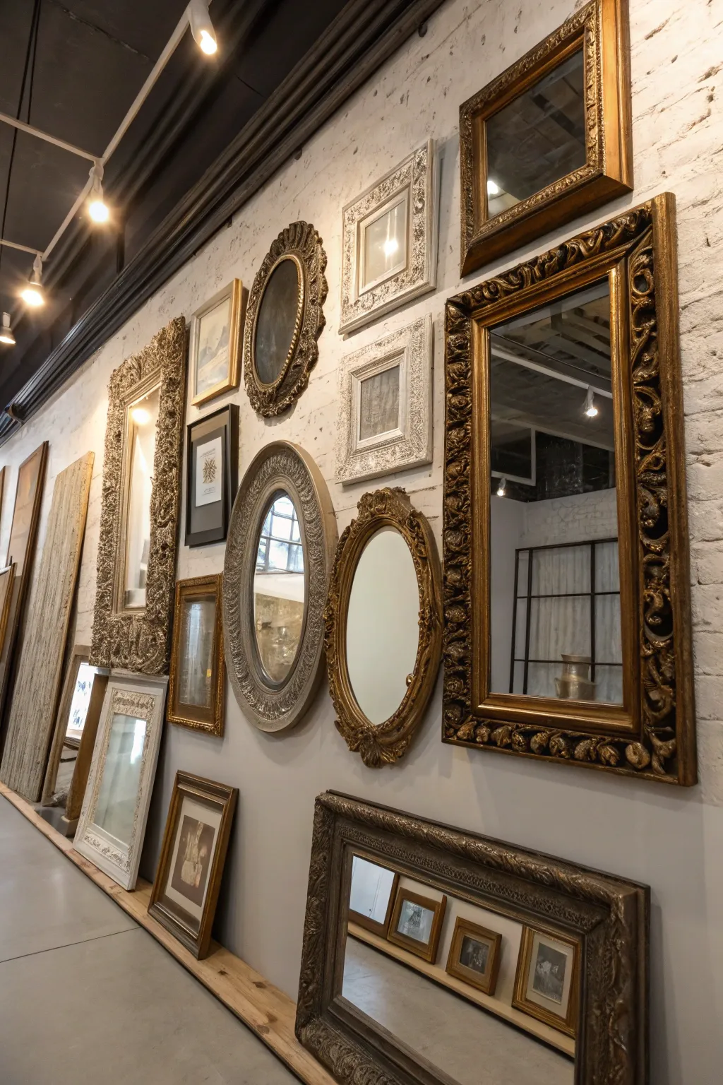 Incorporate vintage and contemporary mirror designs for an eclectic style. I’ve combined different frames in my studio, which creates a delightful mix of eras.