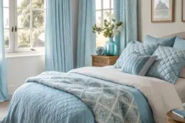 - Gentle White and Gray Quilt Set: Elevate your bedroom’s tranquility with this snug, neutral quilt set. Enjoy restful nights.