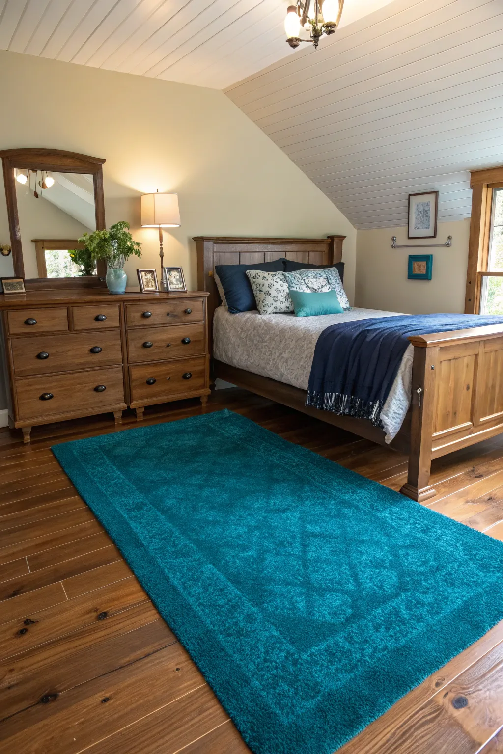 - Aqua Luxurious Floor Covering: Revitalize your bedroom with a delicate, luxurious aqua rug, effortlessly enhancing warmth and flair.