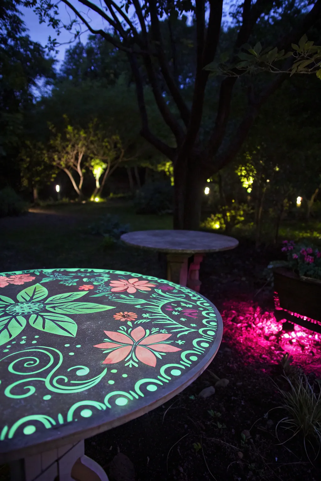 For a dash of enchantment, utilize shine-in-the-shadow lacquer on a straightforward table surface. It’s a delightful amazement when the sun retreats, and the stars emerge.