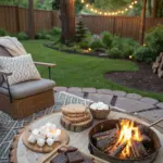 Draped string lights and decorative lanterns can transform any outdoor area into a charming, dreamlike space. I adore using candles to infuse warmth and character into my get-togethers.
