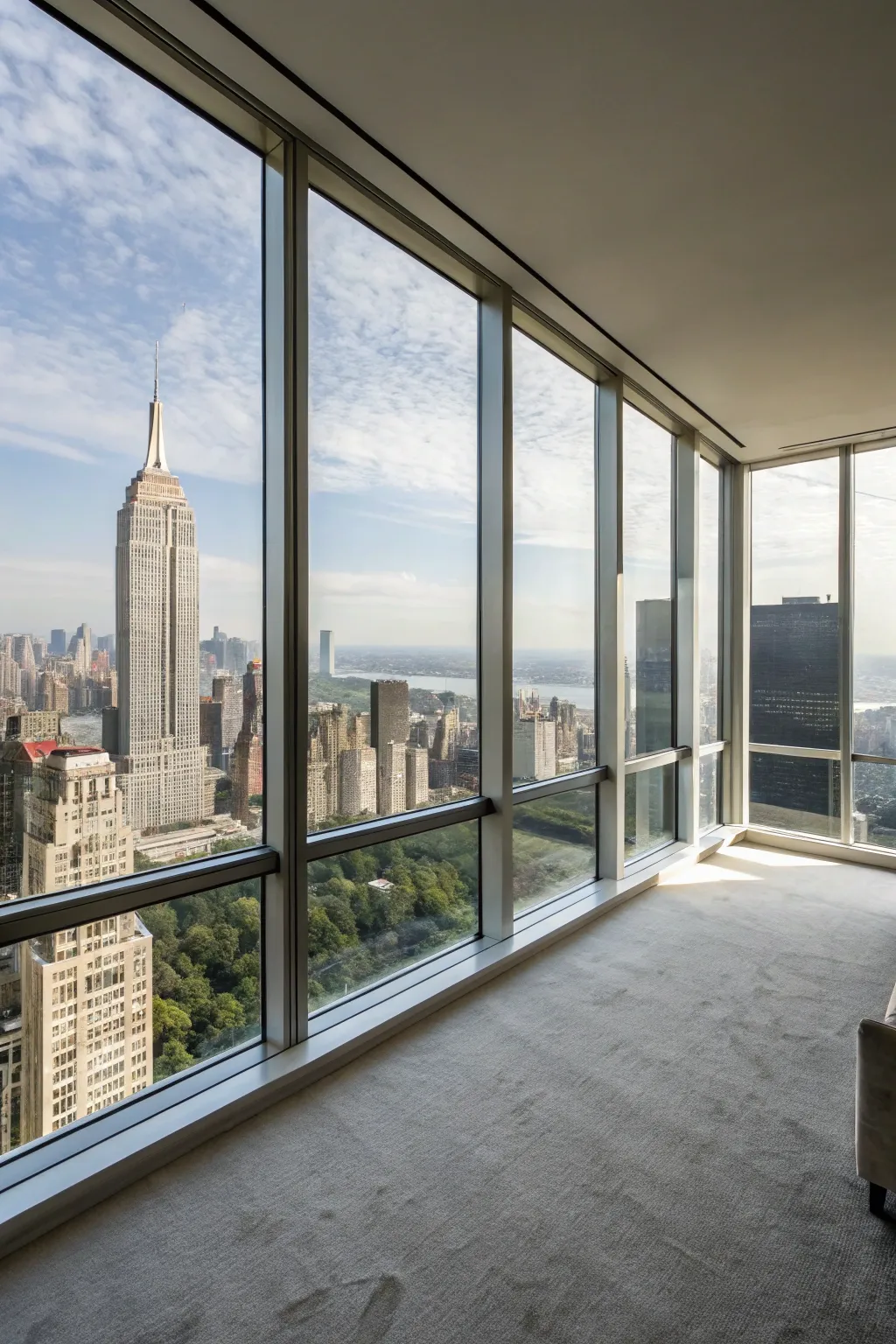 - Automated Light-Filtering Shades: Easily manage light and privacy with modern, automated shades perfect for penthouse windows.