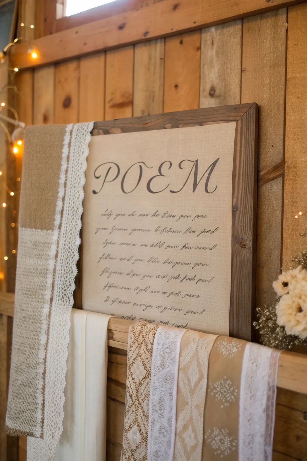 - Lace Textile Trim: Present sophistication to your ornamentation by draping delicate lace surrounding your poem’s setting.