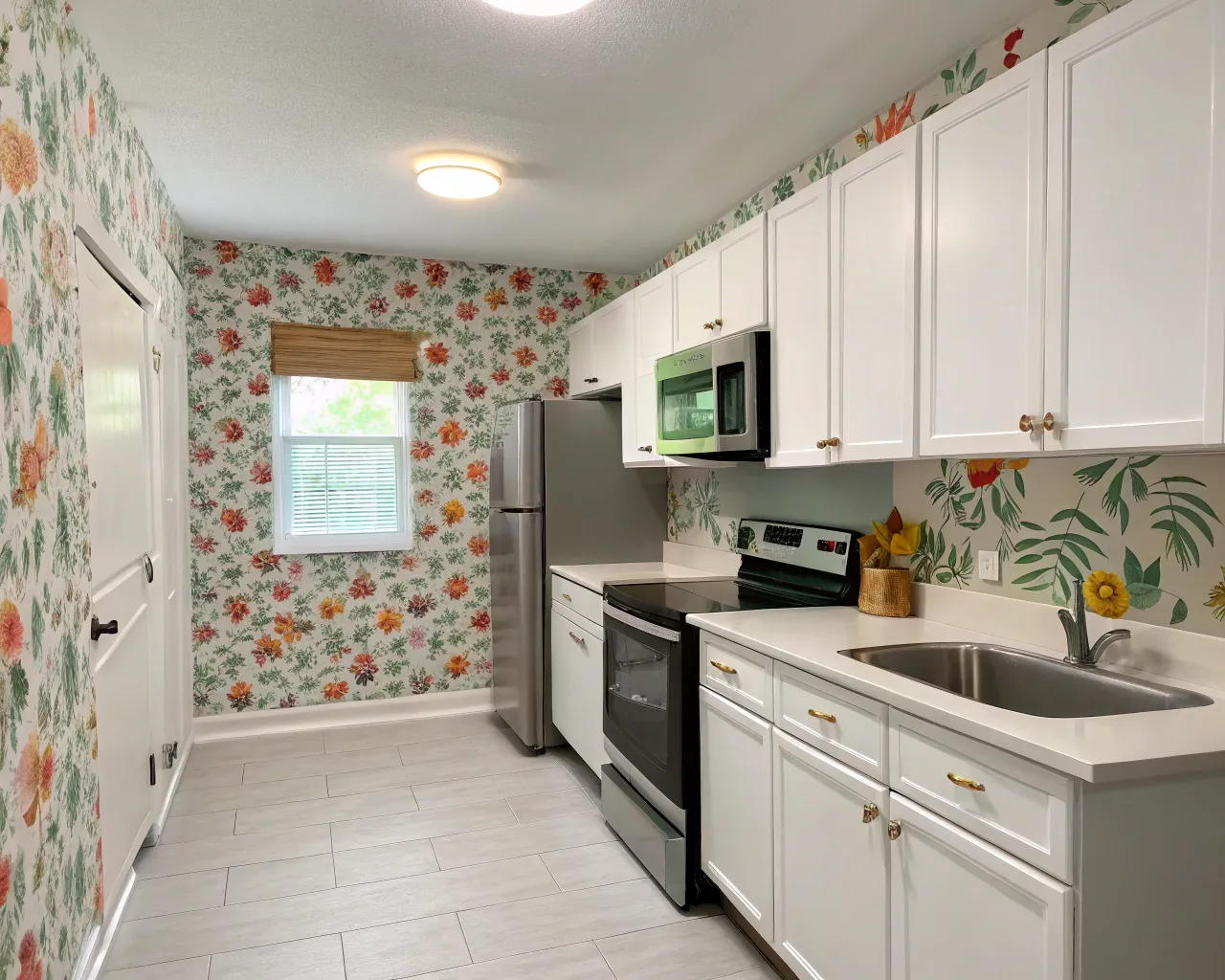 In one client’s rental, we created a stunning backsplash using peel-and-stick tiles for just $68. The transformation was so convincing, visitors couldn’t tell it wasn’t permanent tile.