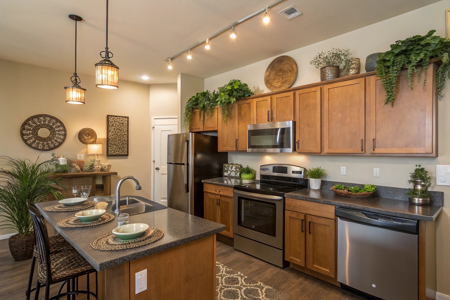 - Botanical elements: Live plants or fresh herbs elevate rental kitchens