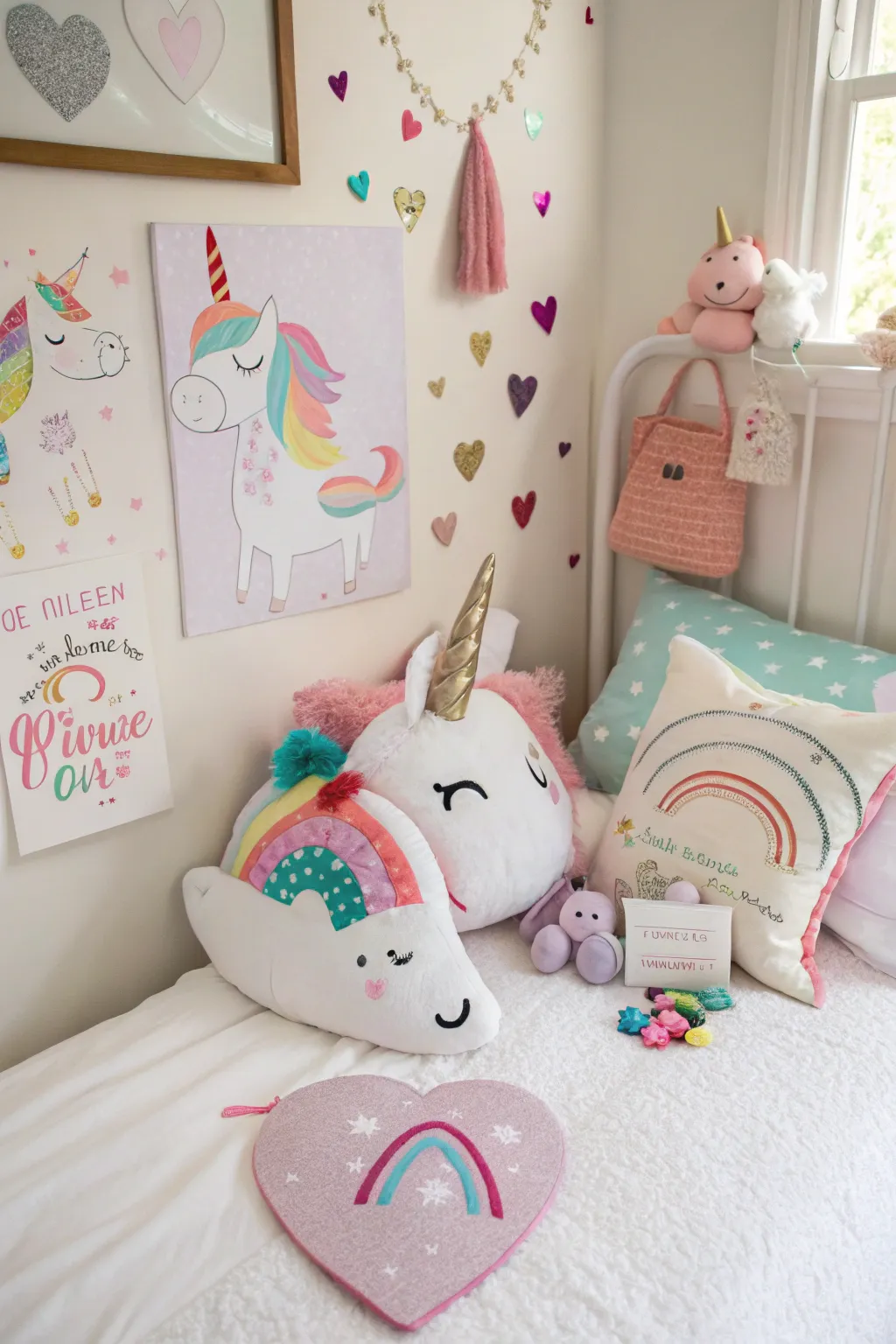 - Rose and Lilac Decorative Prints: Accentuate your room’s enchanting allure with delicate unicorn-themed decorative prints for a dreamy atmosphere.