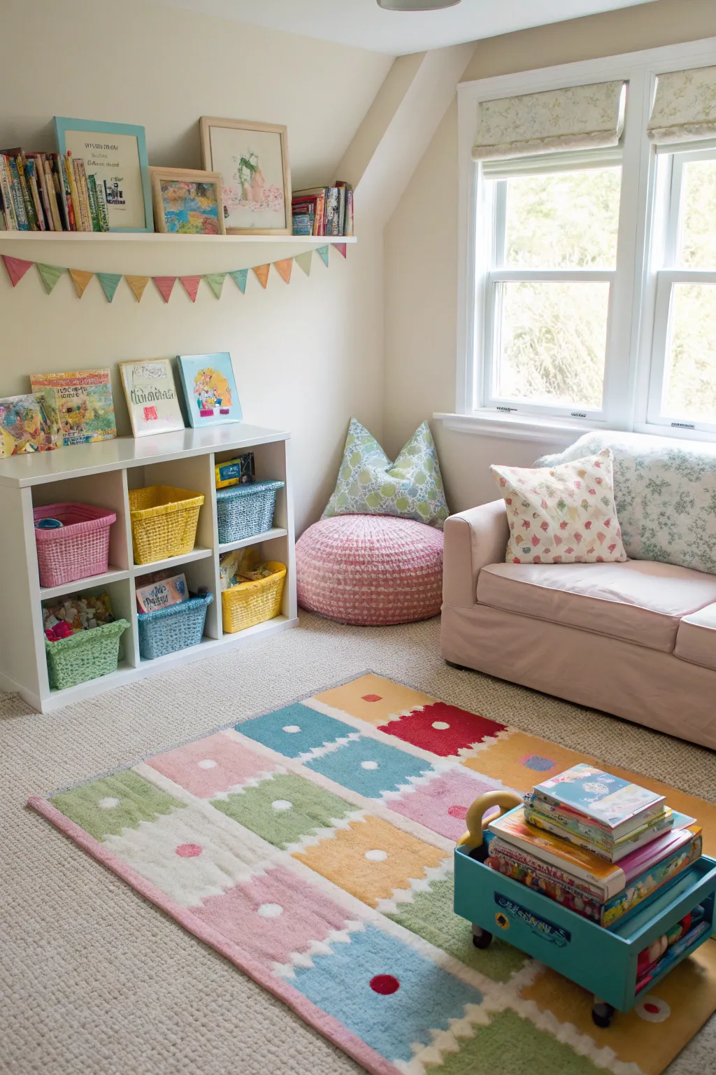 - Vibrant Geometric Nursery Floor Covering: Introduce vibrant color to the nursery and define areas for play with this bright geometric floor covering.