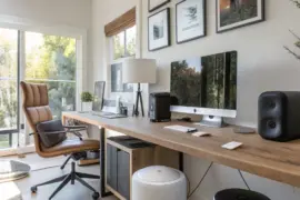 Capitalize on sunlight by situating your desk adjacent to expansive windows. This not only conserves power but also elevates your spirits—a feature I’ve always prized in my workspace.