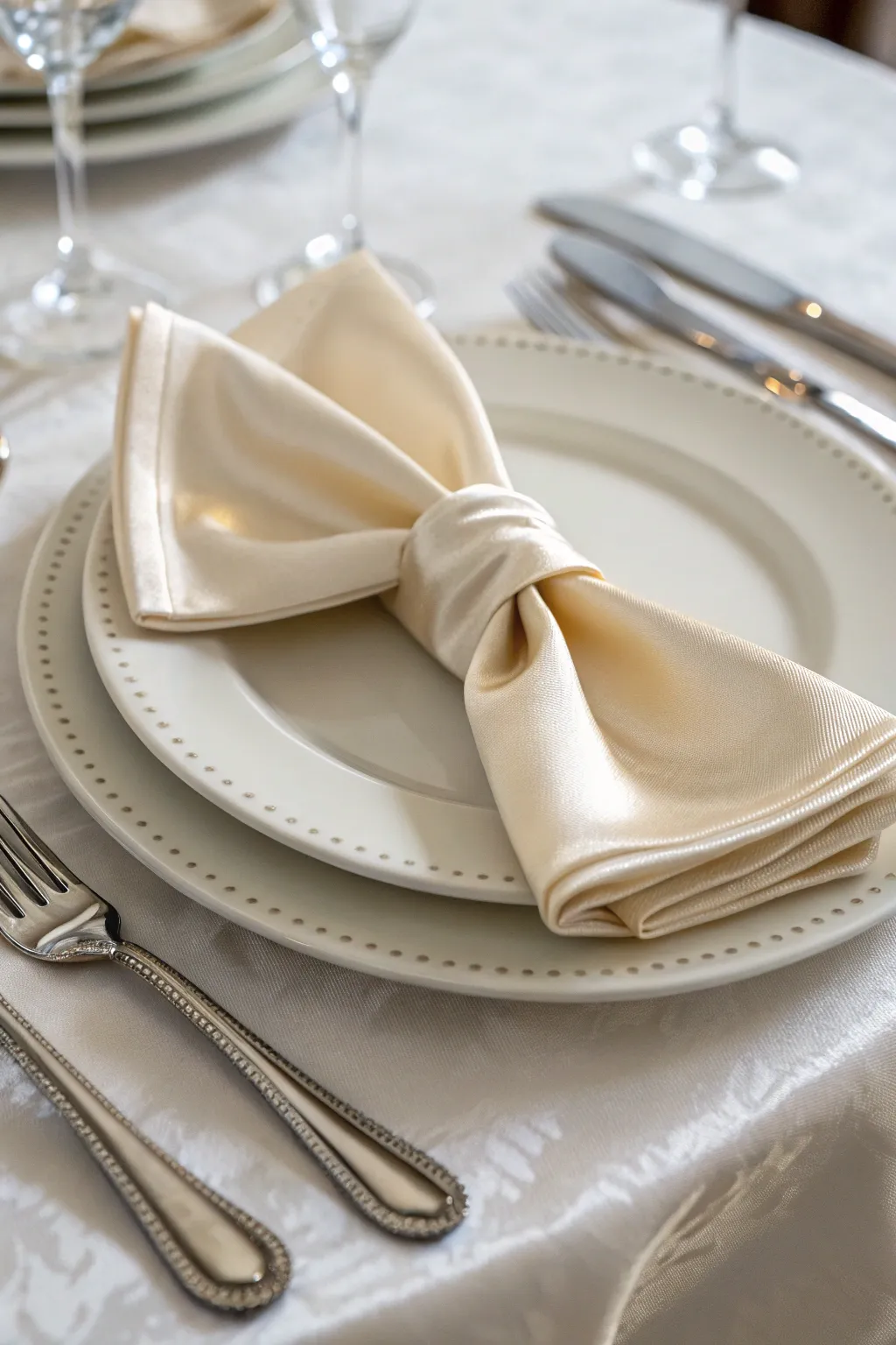 A cloth napkin fashioned into a delightful bow, adding playful charm to your table.